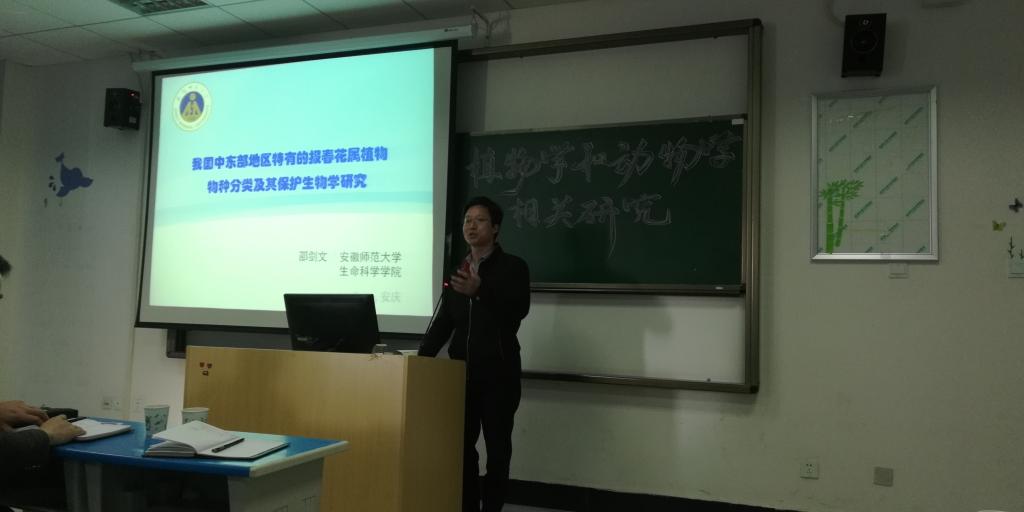 10月28日上午,安徽师范大学邵剑文教授应8858cc永利官网邀请来我校作了题为《我国中东部地区特有的报春花属植物的物种分类及其保护生物学研究》的学术讲座。讲座由8858cc永利官网副院长吴彦主持,相关专业的师生聆听了报告。