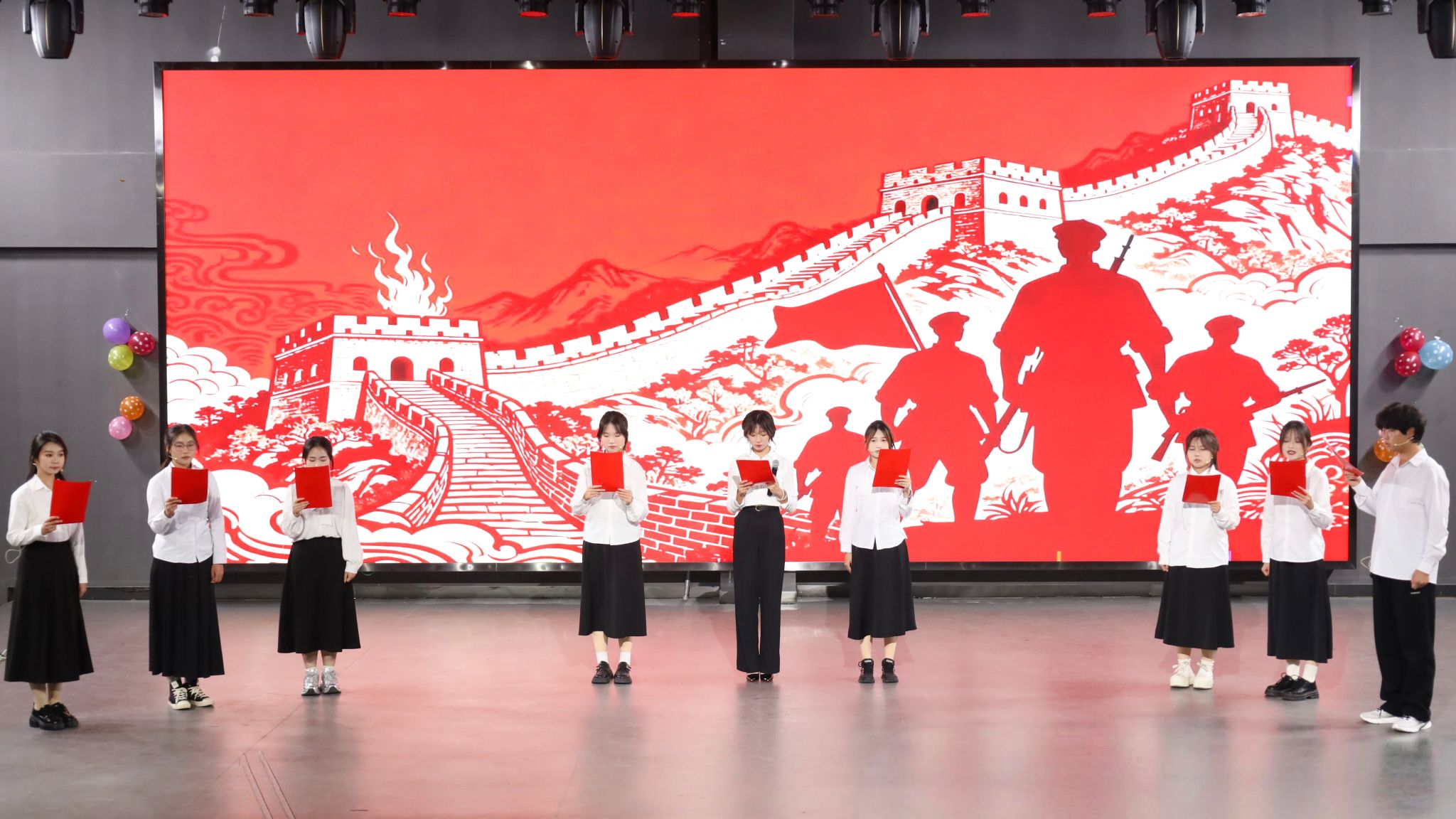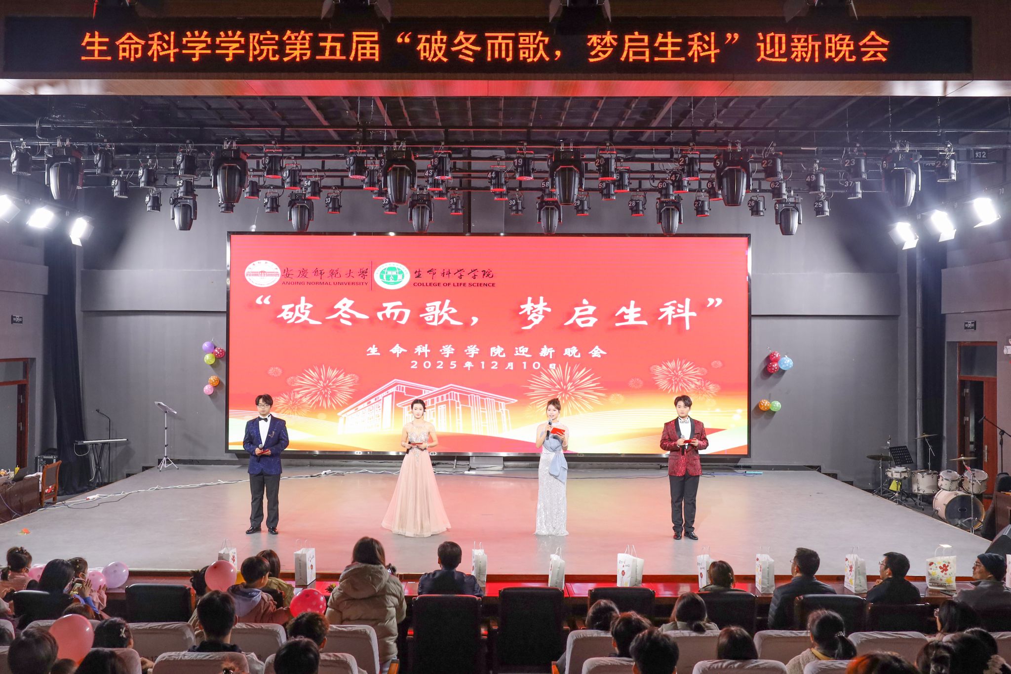“演出道具排放好。”“这个片段再来一遍。”……12月10日,8858cc永利官网第五届“破冬而歌,梦启生科”迎新晚会在传媒学院演播厅如期举行。学院党委副书记张万茂、副院长穆丹及数位教师代表与300余名学生欢聚一堂,共赏这场青春洋溢的演出。