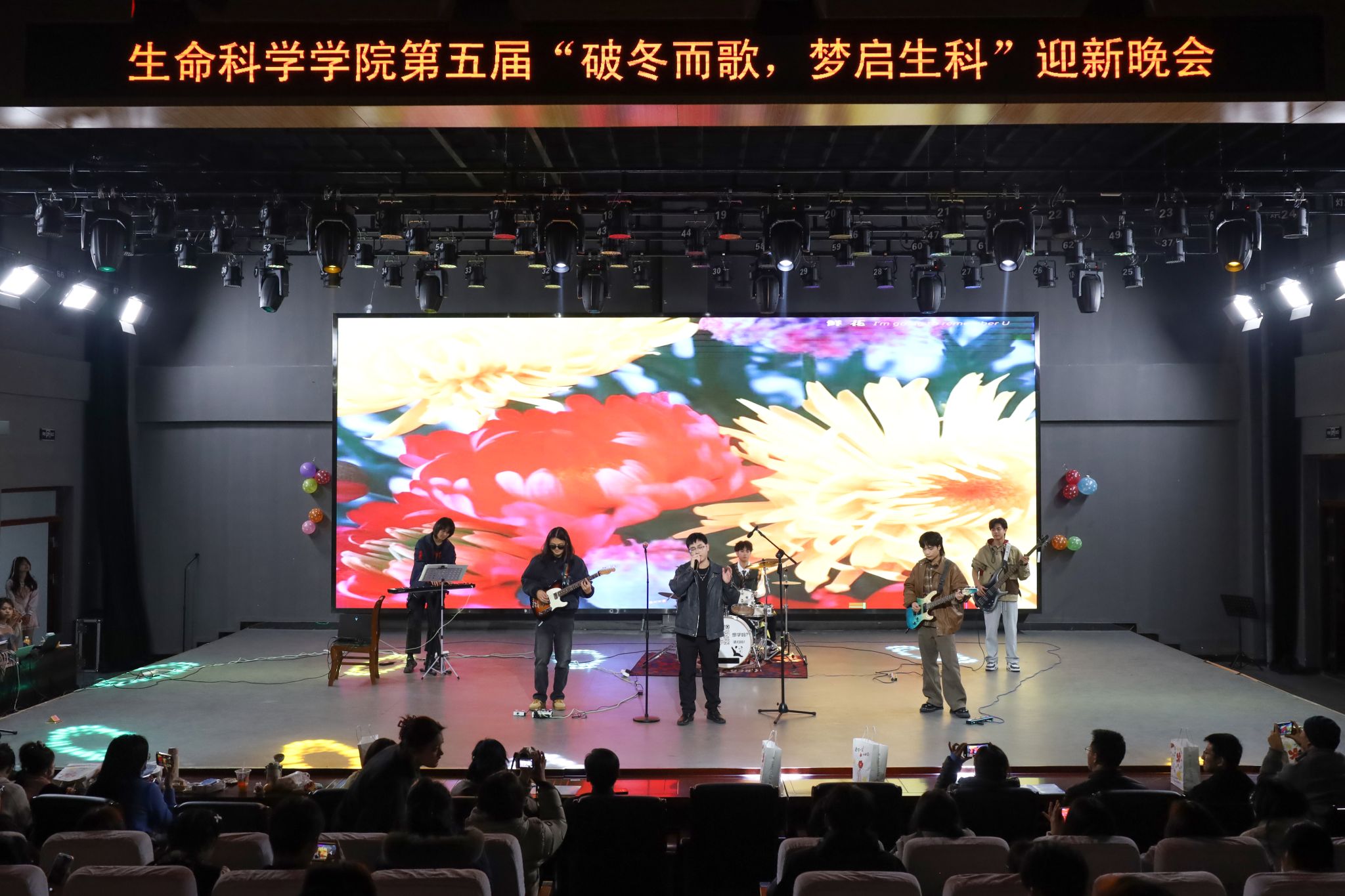 晚会尾声,师生们共同合唱歌曲《夜空中最亮的星》,张万茂献唱歌曲《朋友别哭》,全体演职人员登台谢幕。本次迎新晚会不仅为学生们搭建了展示自我的舞台,更凝聚了学院向心力,未来,学院将继续创新活动形式,鼓励更多学生从“观众席”走向“舞台中央”,在实践中提升综合素养,让学院的人文温度与集体凝聚力,成为每一位生科学子成长路上的温暖底色。(撰稿:学生记者 张宇蝶 邹紫奕 摄影:学生记者 徐若菡 审核:张万茂)
