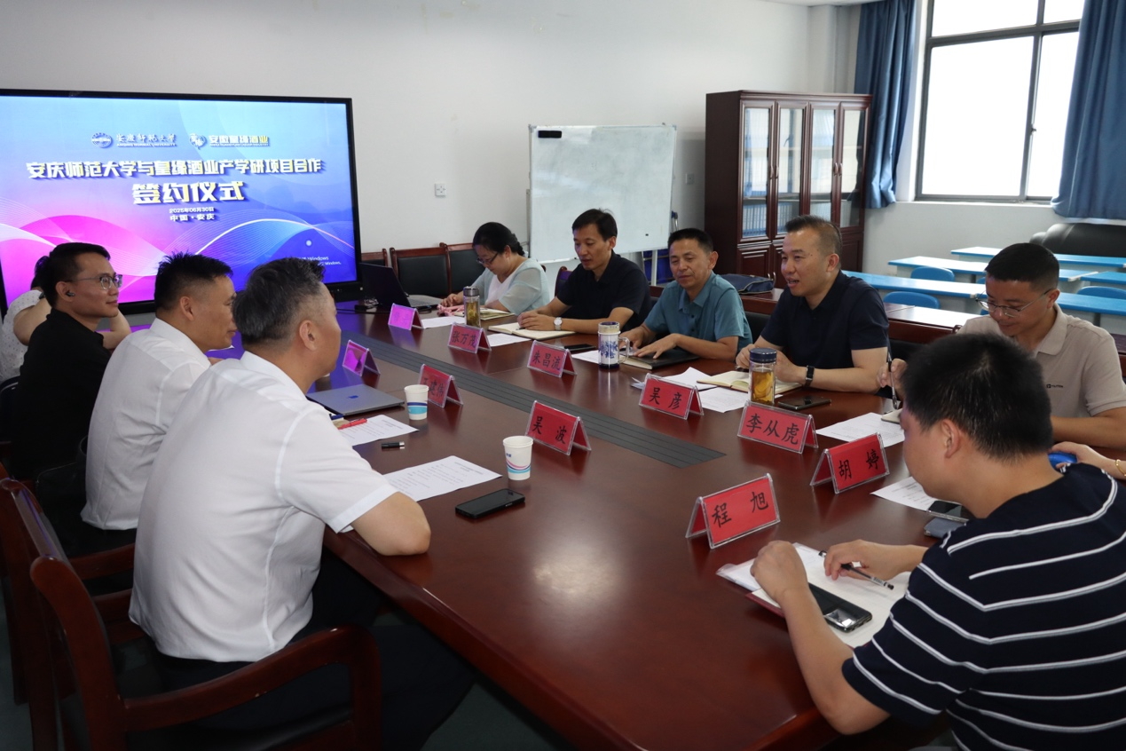 会议由生命科学院党委书记朱昌流主持,学院院长吴彦、党委副书记张万茂、副院长李从虎、穆丹及食品与生物化学教研室主任胡婷、程旭博士参加了本次会议。根据协议内容,双方将深度整合企业实践资源与高校科研优势,共同组建“皇缘健康型白酒联合研发中心”。该中心将聚焦皇缘酒核心酿造工艺优化、特色微生物菌种资源开发、产品健康功能因子挖掘与评价等关键领域,致力于提升传统白酒品质与科技附加值。